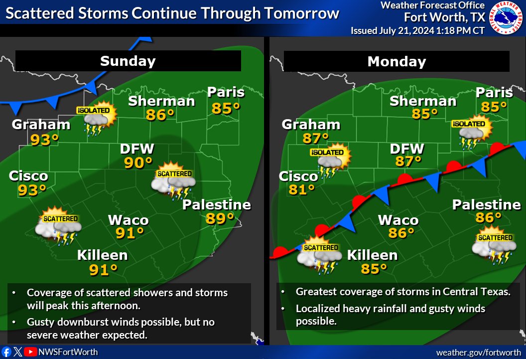 NWS Fort Worth on X: “Unsettled weather will persist through the
