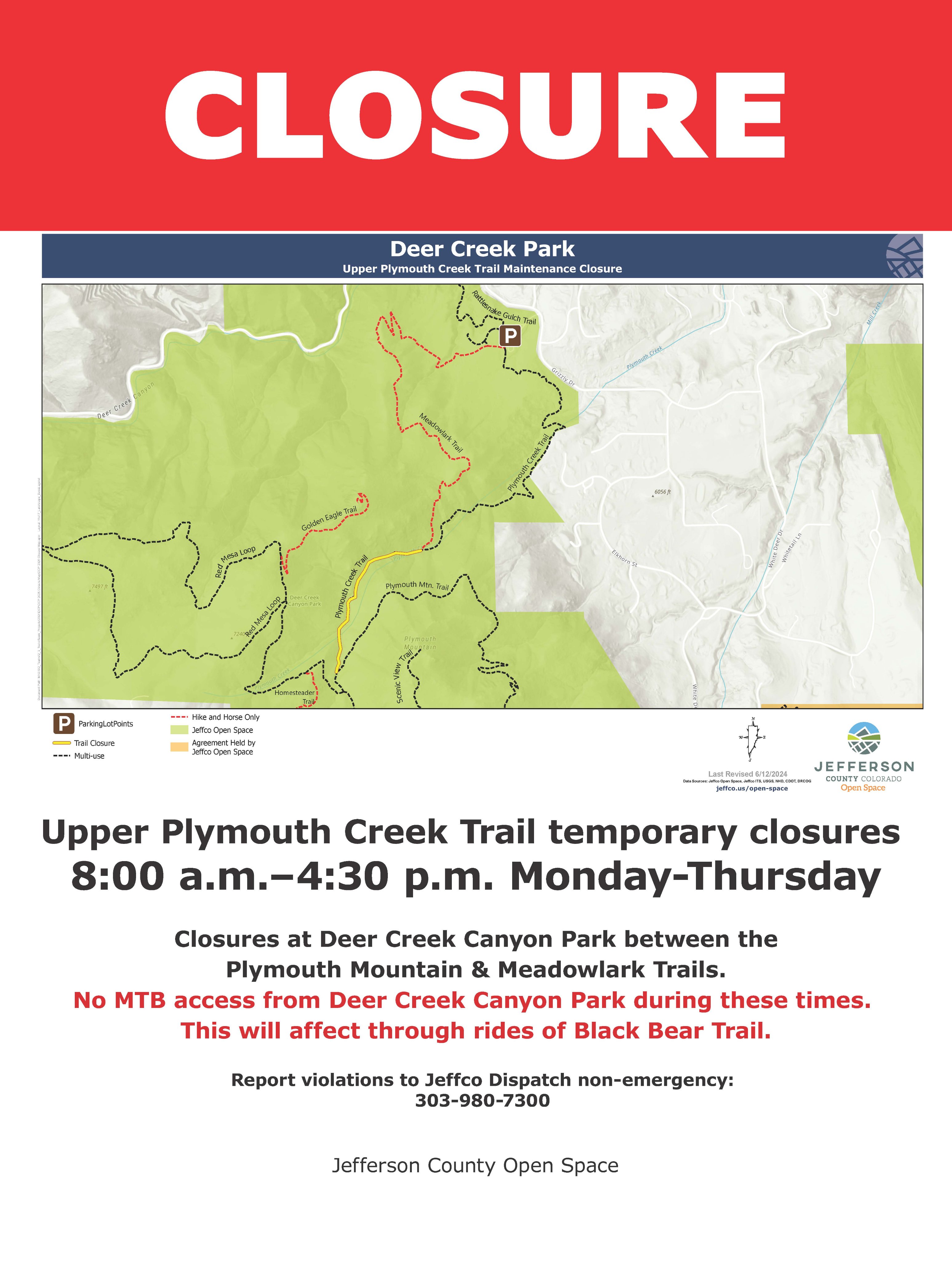 Jeffco Open Space on X: “⚠️NOTICE: Starting 6/24 temp closures