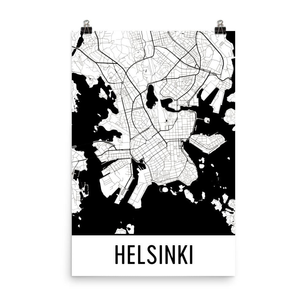 Helsinki Finland Street Map Poster Wall Print by Modern Map Art