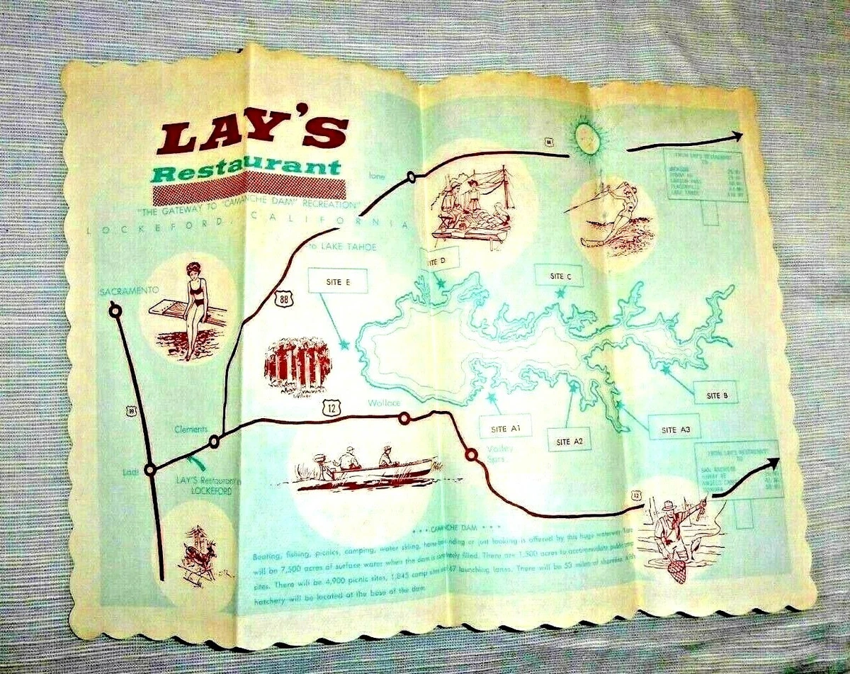 VINTAGE LOVELY PAPER MAT CARTOON MAP CAMANCHE DAM RECREATION